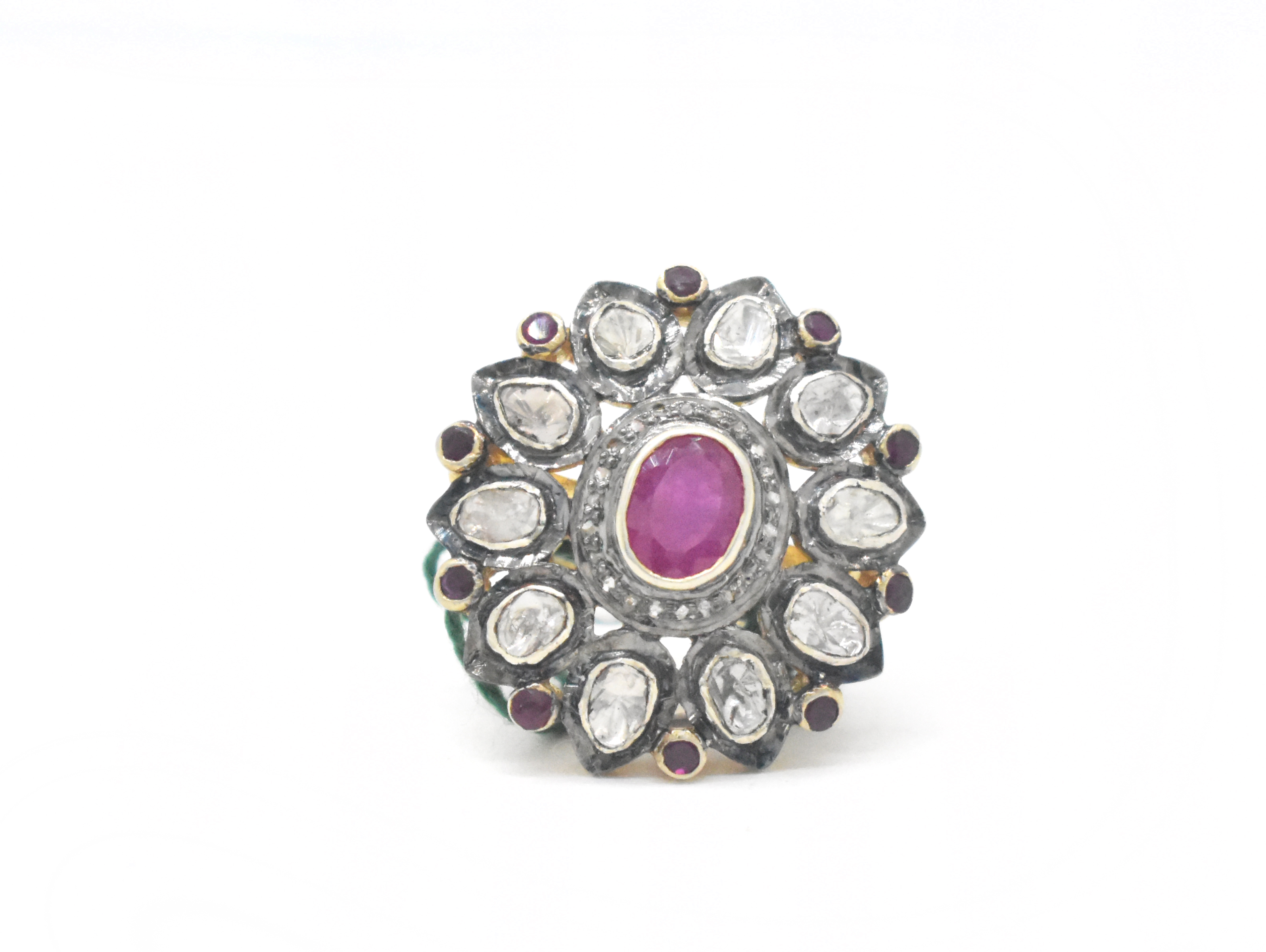 FAQs of Sterling Silver Polki Diamond & Ruby Statement Ring, Vintage Promise Ring, Handmade Polki Jewelry, Anniversary Gift for Wife: